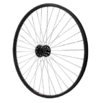 36 or 48 14G black spokes, 4X laced for imact resistance and rotational rigidity.